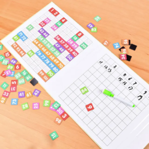 This fun toy has different activities for children to learn their 1- 100. This toy has many activities to support the child in learning and reinforcing No 1 – 100 from filling the blank, learning the numbering sequence, arranging the tiles, writing the numbers and others.