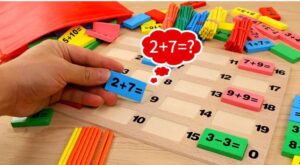 3) The child will learn to solve 3+2 without the counting sticks by quietly using her hands to count if needed.