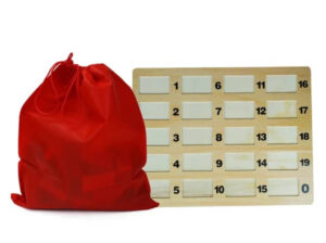 No 1 – 19 for addition, subtraction activities. The child is meant to pick a tile example 2 + 8, using the counting sticks and place that tile on No 10 on the board.